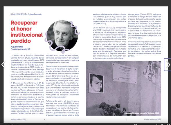 Sobre esto último, en nuestro caso, la PUC se ha diferenciado de las medidas que las universidades de Chile, Santiago y Concepción adoptaron para honrar a los académicos expulsados por razones políticas.
