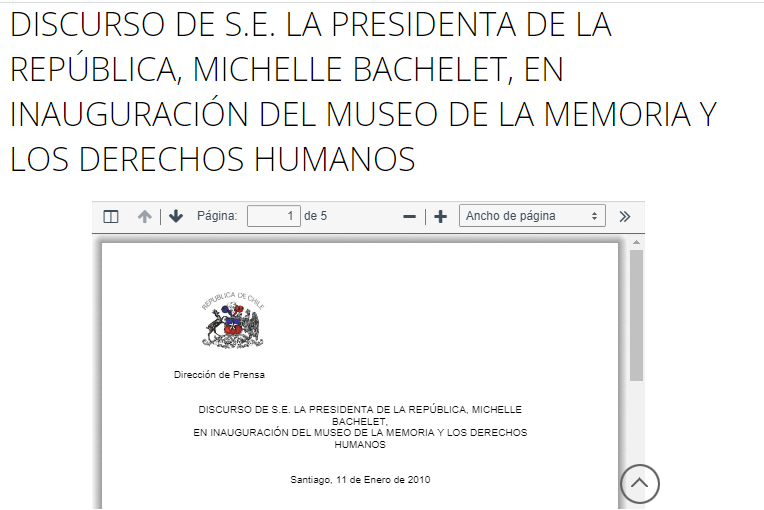 “El 21 de mayo de 2007, en su cuenta anual al Congreso Nacional, la Presidenta de la República, Michelle Bachelet, anuncia la creación del Museo de la Memoria y los Derechos Humanos.