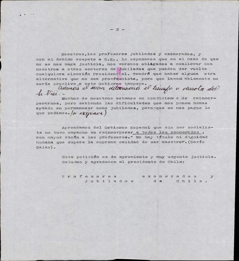 - Se calcula que el personal de la UTE, entre académicos, funcionarios, personal de mantención y de aseo, alcanza a 6 000 personas. La mitad de ellos fueron exonerados entre septiembre de 1973 y los años siguientes. En la Facultad de Educación, de 300 académicos, fueron exonerados entre septiembre de 1973 y abril de 1974, 146 académicos. (Extraído de la página web de la AAFEP UTE: https://franciscp0.wixsite.com/universidate/utenosotros). Según el informe de la Comisión Reconciliación Universitaria de la USACH (1991), “entre octubre de 1973 hasta avanzado el año 1985 en nuestra Universidad se exoneró por razones extra universitarias a no menos de 250 personas, entre profesores y funcionarios administrativos” (USACH, 1991: p. 89). La Comisión recomienda al rector “reconocerles la calidad de exonerados políticos, pedirles perdón por haber sido víctimas de un sistema que no compartía los valores universitarios y que se les ofrezca las medidas de reparación que aparecen en las recomendaciones de este documento” (USACH, 1991: p. 89). En particular, hay ciertas recomendaciones: por ejemplo, que la Oficina de Reincorporación tomará conocimiento yrecibiera la documentación de cinco ex-profesores de la Universidad como también de cinco funcionarios administrativos “en relación al otorgamiento de grados, materias previsionales y contractuales”; cupos especiales de pregrado para los hijos de exonerados de la universidad; liberación del pago de matrícula; “facilidades administrativas para aquellos profesores exonerados recontratados como profesores de jornada por hora, reciban los beneficios de bienestar del personal”(USACH, 1991: p. 137)
