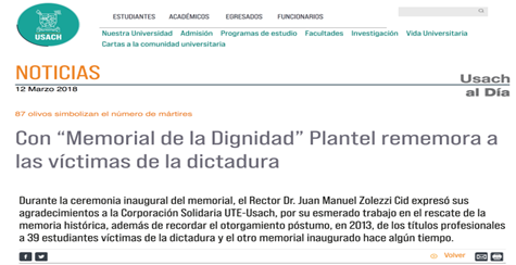 - Han realizado distintas ceremonias y actos recordatorios sobre los estudiantes, académicos y funcionarios que fueron víctimas de las acciones de la dictadura militar entre 1973 y 1990. Además de las instalaciones de memoriales, placas recordatorias y murales. Por ejemplo tienen una placa con víctimas fatales, trabajada desde 1994 hasta 2019; una placa de “nunca más” del 2006.
