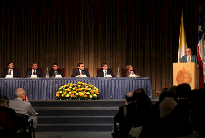 En esta ceremonia reitero una vez más la importancia, valoración y rol crucial de la libertad académica y de cátedra que posee nuestra institución, la que le ha significado el reconocimiento, prestigio y liderazgo nacional y en Latinoamérica. Los únicos límites que nos ponemos son el cuidado de la dignidad de las personas y el bien común de la sociedad. De esta manera podremos seguir avanzando en la consolidación de una universidad con una identidad definida, de calidad internacional, creadora de conocimiento, innovadora, comprometida y al servicio del país. Es a Chile al que debemos servir con pasión, convicción y compromiso.
